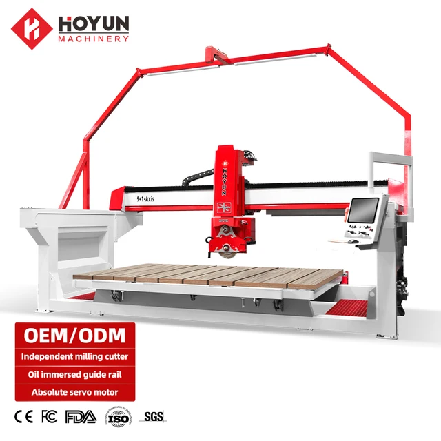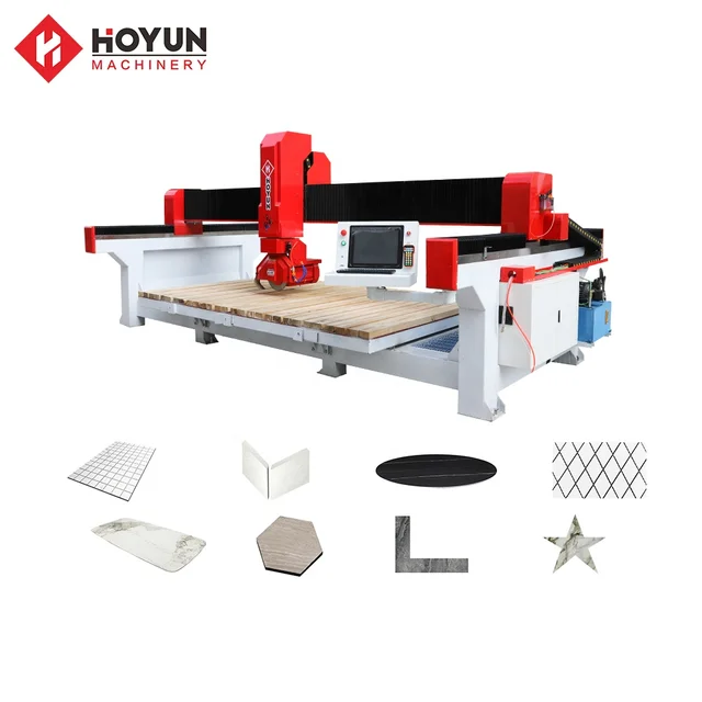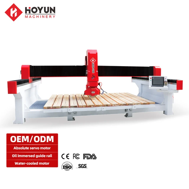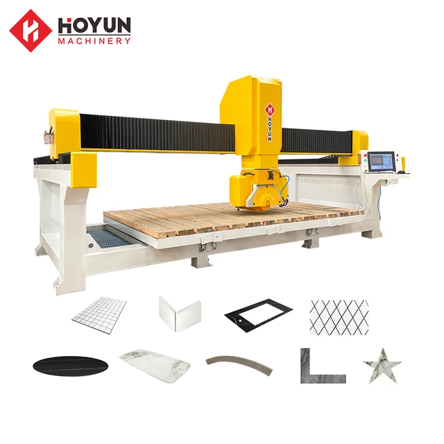 Hoyun Machinery High Efficiency Cnc Granite Cutting Five Axis Bridge Saw Stone Marble Saw for Processing Bathroom Countertops
